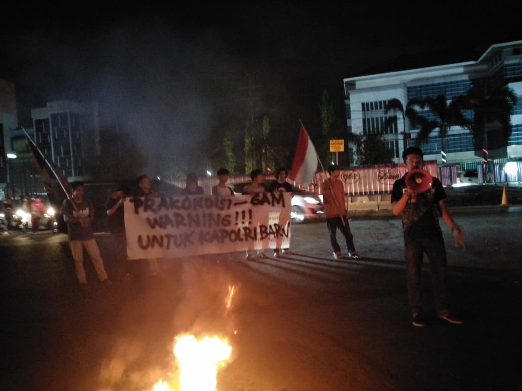 Makassar.tv, Puluhan mahasiswa yang tergabung dalam Gerakan Aktivis Mahasiswa (GAM) melakukan aksi prakondisi dengan membentangkan spanduk yang bertuliskan “Warning Untuk Kapolri Baru”.