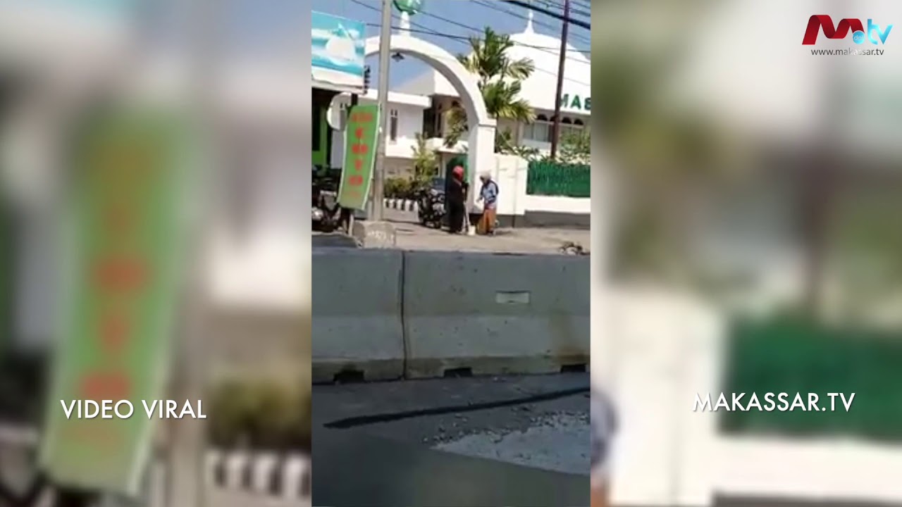 Tayangan vidio yang direkam dijalan Andi Pangeran Petarani Kota Makassar, tepatnya di gerbang pintu masuk halaman masjid HM, Asyik, menggambarkan seorang wanita paru baya diturunkan dari sebuah motor, lalu didandani dengan tampilan ala pengemis.