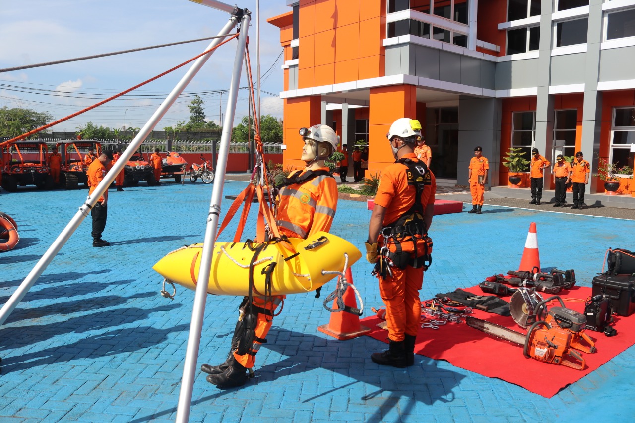 Selanjutnya dilakukan pemeriksaan alat yang disiagakan berupa kendaraan operasional, peralatan komunikasi, alat selam dan alat ekstrikasi untuk dipastikan bisa berfungsi saat dibutuhkan.