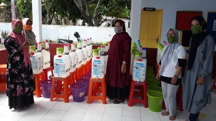 Setelah beberapa waktu lalu aparat desa di bawah komando Suardi sebagai Kepala Desa membagikan masker dan melakukan penyemprotan disinfektan di beberapa titik, kini giliran Tim Penggerak PKK yang beraksi di lapangan.