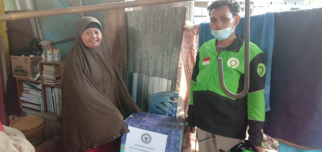 Untuk mematuhi aturan yang dikeluarkan oleh pemerintah untuk menjaga social dan physical distancing, maka IKAIE FEB-Unhas menggandeng Gojek Makassar untuk mengantarkan bingkisan ke rumah-rumah yang berhak mendapatkan bingkisan tersebut.