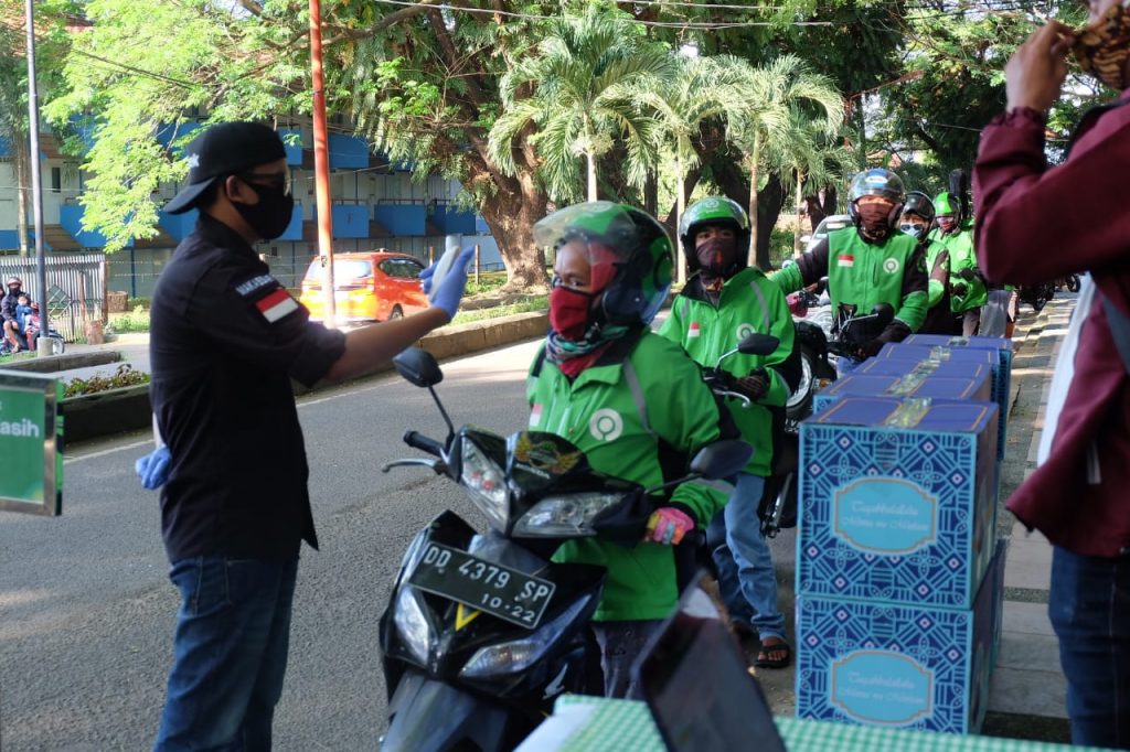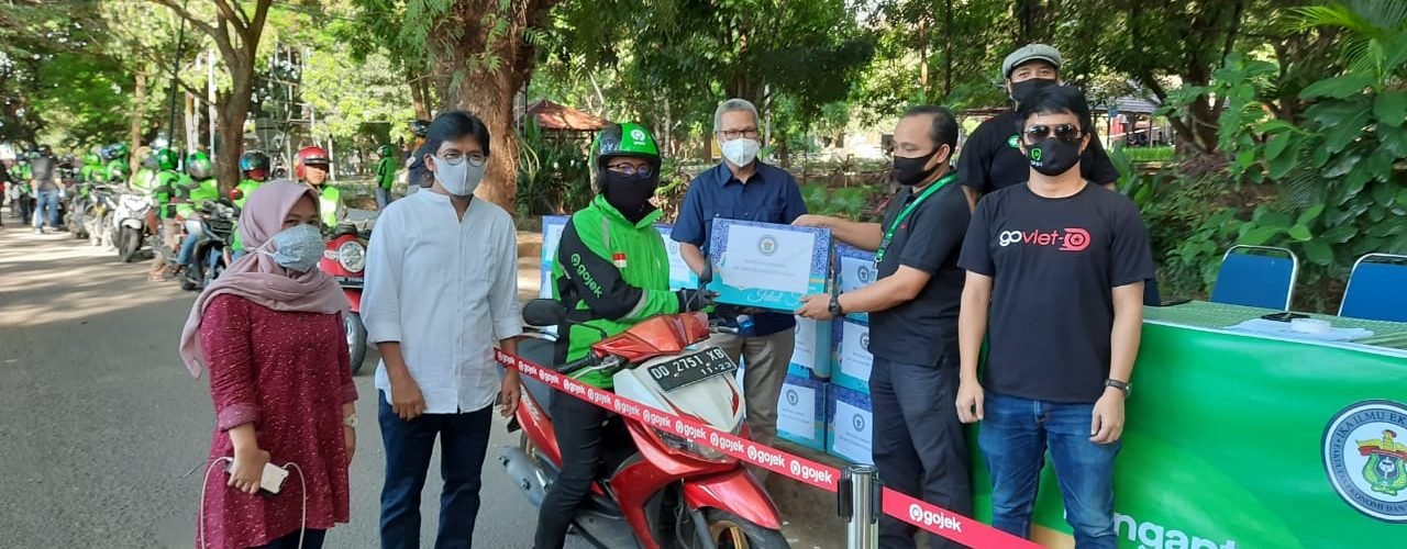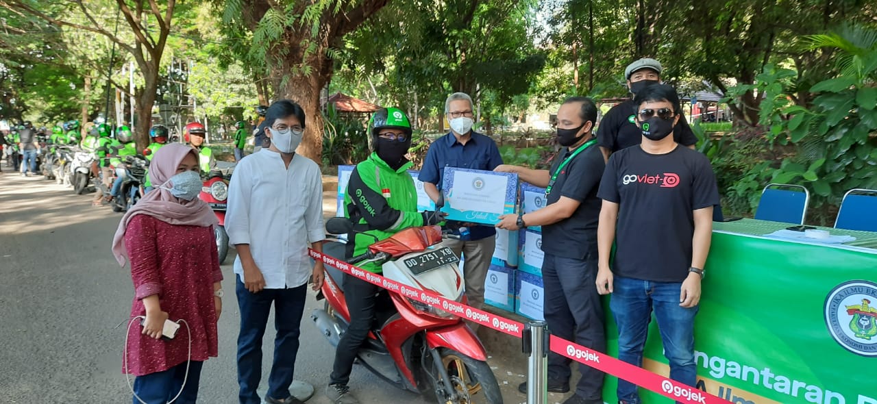 Gojek menyiapkan armada motor sebanyak 100 unit untuk pengantaran bingkisan lebaran IKAIE FEB-Unhas, bingkisan lebaran berasal dari donasi para alumni Ilmu Ekonomi FEB-Unhas dan disalurkan sebanyak 102 bingkisan kepada petugas kebersihan dan pegawai harian FEB-Unhas, mace-mace penjual di Kantin FEB-Unhas serta masyarakat umum, demikian disampaikan Qarina Kaimuddin sebagai koordinator program ini. (adv)