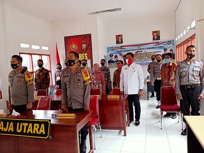 MAKASSAR.TV, SULAWESI – Kepolisian Resor (Polres) Toraja Utara menandatangani pakta integritas dan pengambilan sumpah kepada panitia, peserta, dan orang tua wali peserta seleksi penerimaan terpadu bintara Polri tahun 2020.