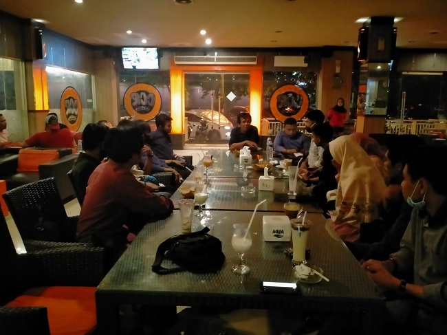 Staf ahli Edi Manaf, Adi Karama, bertemu dengan pengurus IMM Makassar di sebuah warkop di Kota Makassar.