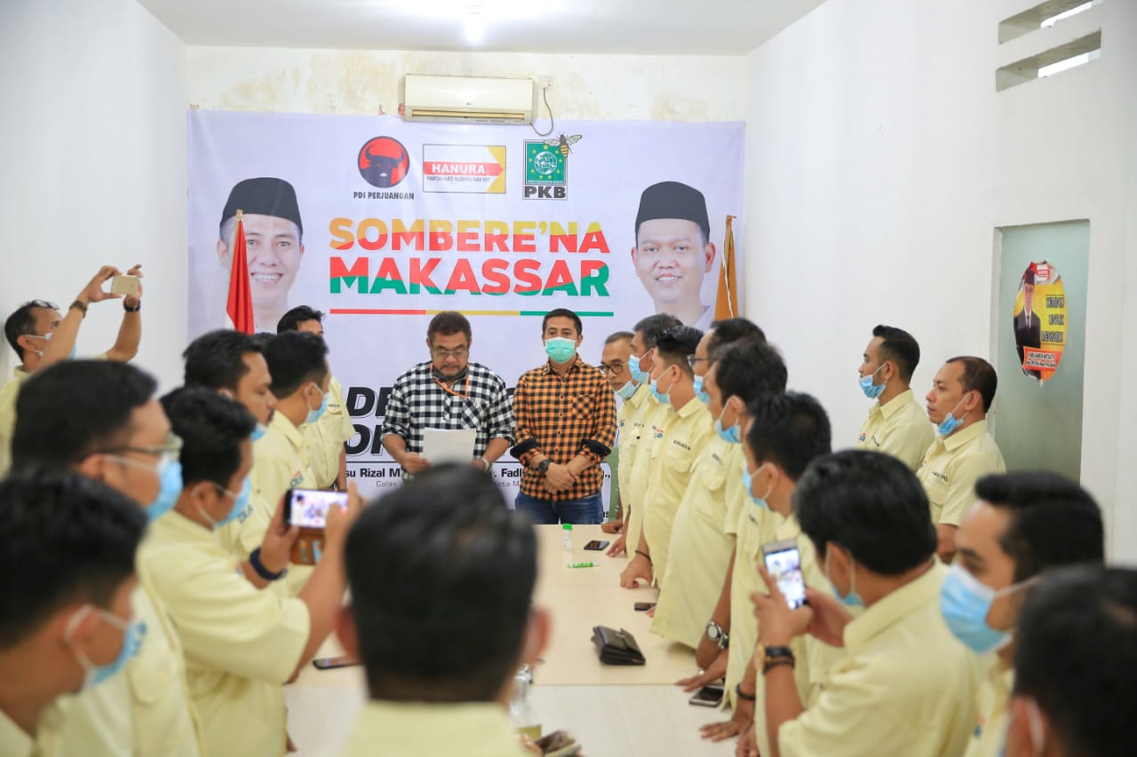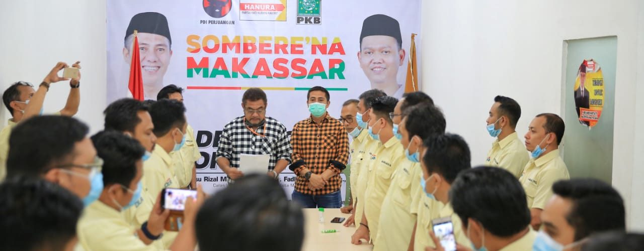 MAKASSAR.TV-SULAWESI, Bakal Calon Wali Kota Makassar, Syamsu Rizal alias Deng Ical, bersama Ketua Tim Pemenangan Dilan, Andi Yagkin Padjalangi, mengukuhkan Tim Hukum Dilan di Sekretariat Bersama (Sekber) Dilan, Jalan Jenderal Sudirman, Jumat (25/9/2020) malam. Tak kurang 50 advokat bergabung dalam tim hukum pasangan doktor dan dokter tersebut.