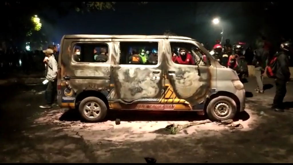 Unjuk rasa ini mengakibatkan satu buah mobil ambulans di depan kantor Partai Nasdem Kota Makassar, dibakar hingga mengakibatkan rusak parah.
