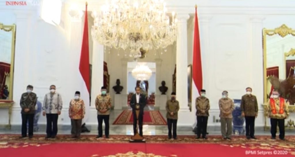Saat ini, persatuan dunia dan suasana kondusif amat diperlukan untuk menghadapi pandemi Covid-19. “Indonesia mengajak dunia mengedepankan persatuan dan toleransi beragama untuk membangun dunia yang lebih baik,” ujarnya. Untuk diketahui, Presiden bersama dengan Wakil Presiden Ma’ruf Amin sebelumnya melakukan pertemuan dan diskusi bersama perwakilan antarumat beragama, yakni H. Helmy Faishal (Sekjen PB Nahdlatul Ulama), K.H. Muhyiddin Junaidi (Wakil Ketua Umum Majelis Ulama Indonesia), dan H. Anwar Abbas (Ketua PP Muhammadiyah). Hadir pula Pdt. Jacklevyn F. Manuputty (Sekretaris Umum Persekutuan Gereja Indonesia), Ignatius Kardinal Suharyo (Ketua Umum Konferensi Waligereja Indonesia), Wisnu Bawa Tenaya (Ketua Umum Parisada Hindu Dharma Indonesia), Arief Harsono (Ketua Umum Persatuan Umat Buddha Indonesia), dan Xs. Budi Santoso Tanuwibowo (Ketua Majelis Tinggi Agama Konghucu Indonesia). Selain itu, mendampingi Presiden dan Wakil Presiden ialah Menteri Koordinator Bidang Politik, Hukum, dan Keamanan Mahfud Md., Menteri Luar Negeri Retno Marsudi, Menteri Sekretaris Negara Pratikno, dan Menteri Agama Fachrul Razi. (adv)
