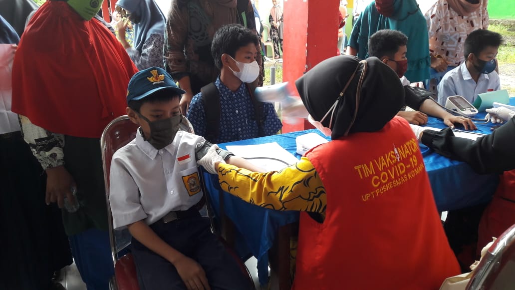 Kegiatan vaksinasi di SMPN 3 Polut, Kamis 14 Oktober 2021, melibatkan tim vaksinator unit pelayanan terpadu Puskesmas Desa Ko’mara. (rls)
