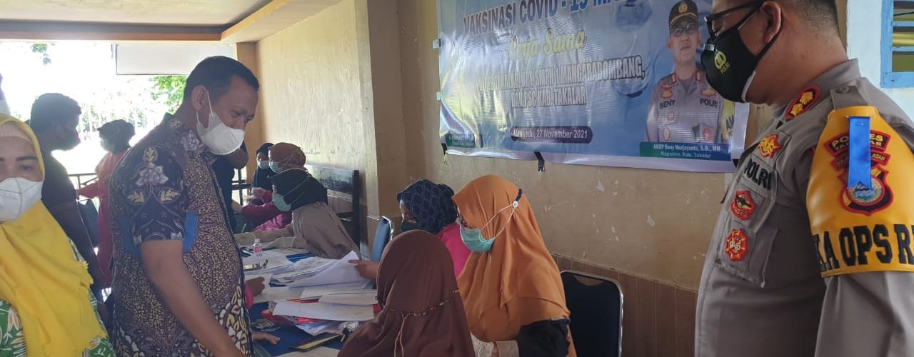 MAKASSAR.TV-SULAWESI, Bupati Takalar Syamsari Kitta didampingi Kapolres Takalar AKBP Beny Murjayanto memantau jalannya kegiatan vaksinasi massal yang dilakukan di sejumlah kecamatan, Sabtu, 27 November 2021.